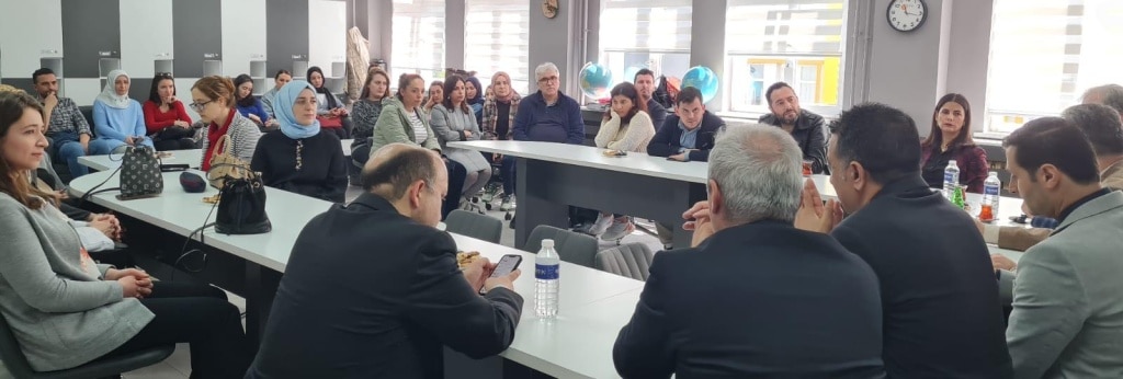 Daha sonra öğretmenler odasına geçerek öğretmenlerimizle sohbet eden Kaymakamımız Sayın Bülent KARACAN; “Çocukları geleceğe hazırlamada en önemli görevin öğretmenlere düştüğünü belirterek Kaymakamlık olarak öğretmenlere her türlü desteği vermeye hazır olduklarını ve eğitimi çok önemsediklerinin altını çizerek çok kıymetli nasihat ve tavsiyelerde bulundular”.