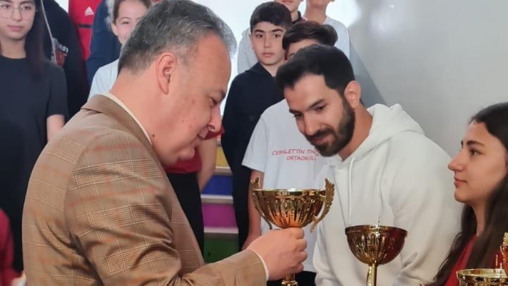 Okul Müdürümüz Hasan GÜNAKAN’dan Okulumuz ve öğrencilerin genel durumu hakkında detaylı bilgiler aldı. Kaymakamlık Kupası Kros Yarışmalarında İlçede 4 Yarışmada 3 birincilik 1 ikincilik alan Okulumuz Kros Takımlarına kupalarını verip diğer spor müsabakalarında da Öğrencilerimize başarılar diledi.